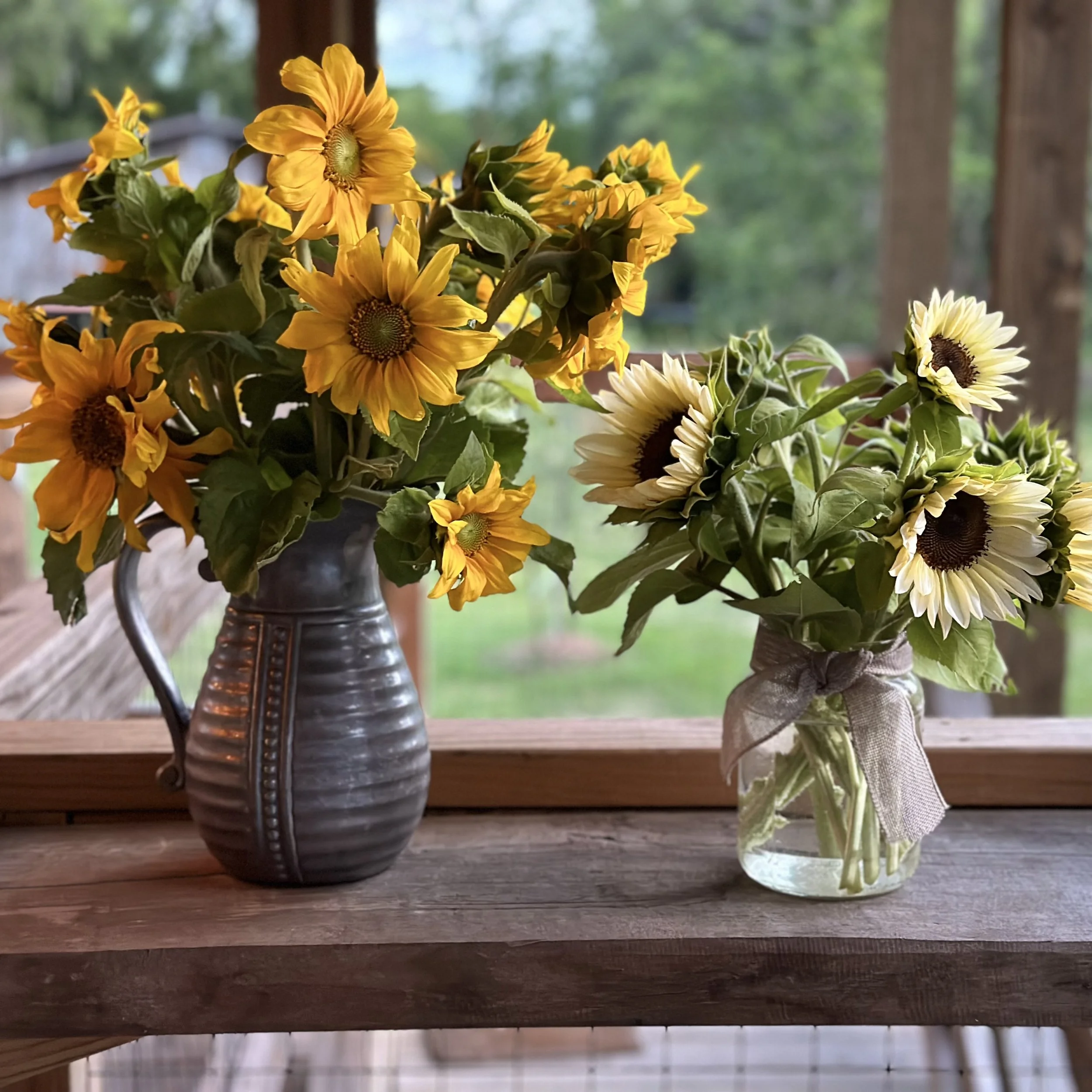 When sunflowers are in season, we offer pre-ordered/pre-made bouquets. They may vary in price according to size and type. Please order 48 hours in advance through email at petiteansefarm@gmail.com or call 337.335.8012, and we can let you know what is available.