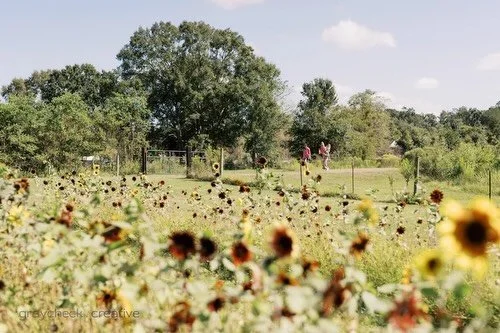 In the spring and fall we enjoy growing sunflowers and zinnias for farm friends! When flowers are in bloom (normally in April-May/Oct-Nov), we open up our gates for family-friendly you-pick experiences, educational field trip opportunities, and outdoor ticketed events that often include a date-night picnic and live music. As part of each farm experience, guests may create bouquets, fill large mason jars and/or 2 gallon buckets of farm fresh blooms. If the cows and donkeys are feeling social, guests may also feed them sunflowers and treat them to a good ole head scratch. It is our hope that each visitor will get to experience a bit of peace, slow down, walk the land and listen to its gentle song.